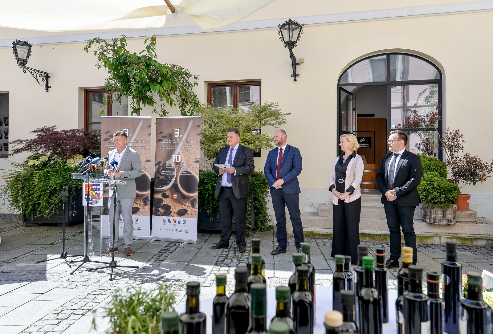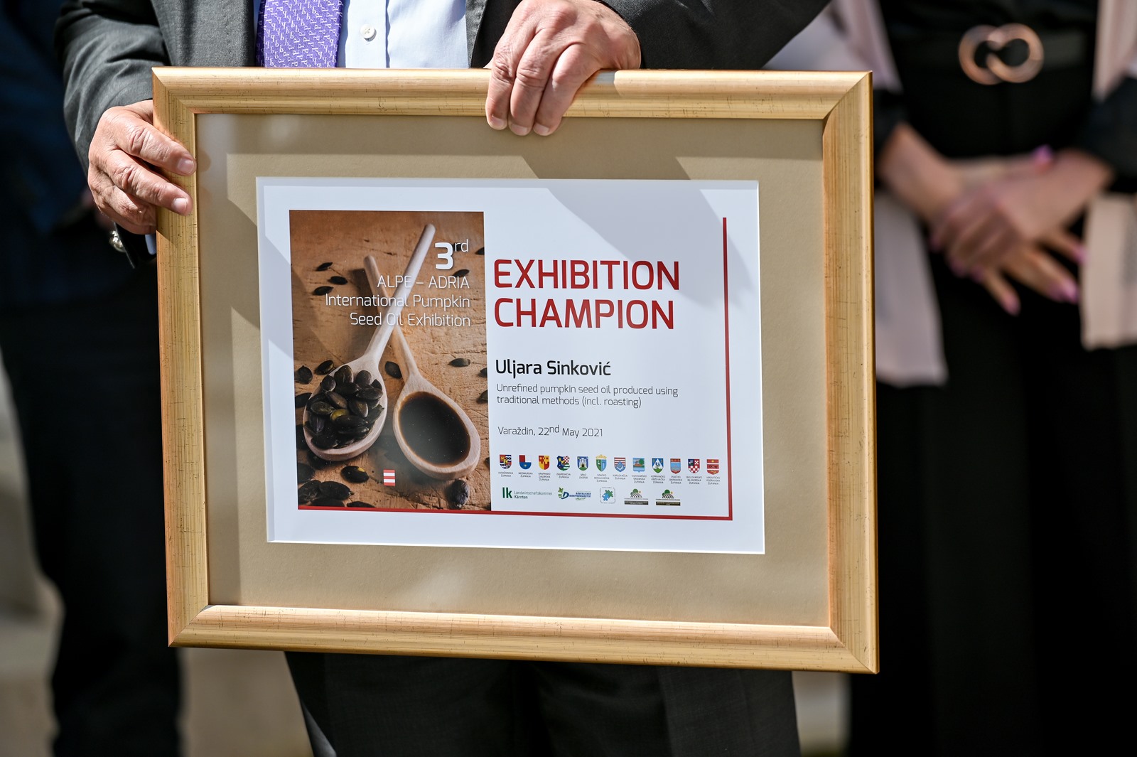 On 26th of May 2021, the unique International Alps-Adriatic Pumpkin Seed Oil Exhibition took place already for the third time in a row in the atrium of Varaždin County palace. Once again, it gathered pumpkin oil producers from Austria, Croatia, Hungary and Slovenia. Due to epidemiological reasons, the exhibition took place in a different format, gathering only winners of gold, silver and bronze medals.