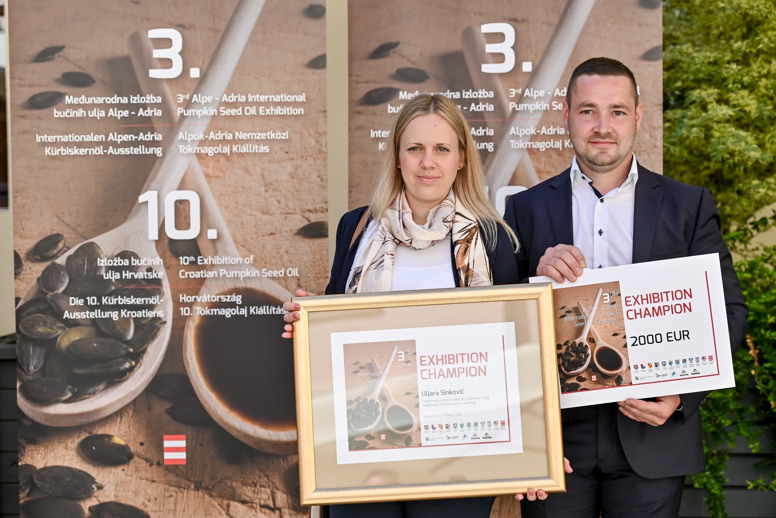 The exhibition champion is the oil-mill ‘Sinković’ from Krapina-Zagorje County, in the category of virgin pumpkin seed oils, which also won gold medal with another product in the category of cold pressed pumpkin oils. The award of € 2.000 was handed over by the Chair of the Alliance, Varazdin County Prefect, Radimir Čačić.